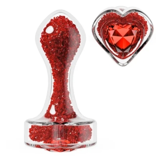 > Dildo Glass Plug with Heart Gem Rosu