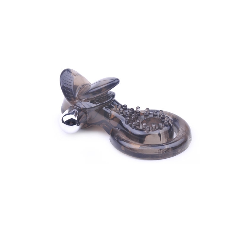 Inel dublu pentru penis, prevazut cu vibratii si stimulator clitoridian in forma de limba. Inelul este prevazut cu numerosi cili pentru un plus de stimulare.