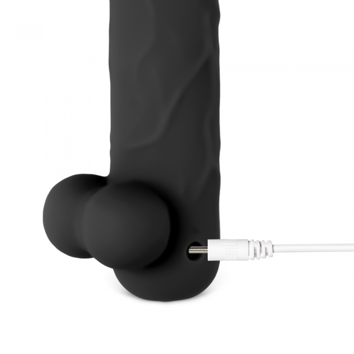Vibrator realistic cu dimensiuni reduse, prevazut cu testicule si 1 singur buton pentru a accesa si controla cele 10 moduri de vibrare. Vine la pachet cu un cablu USB pentru reincarcare.