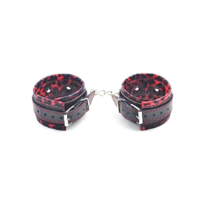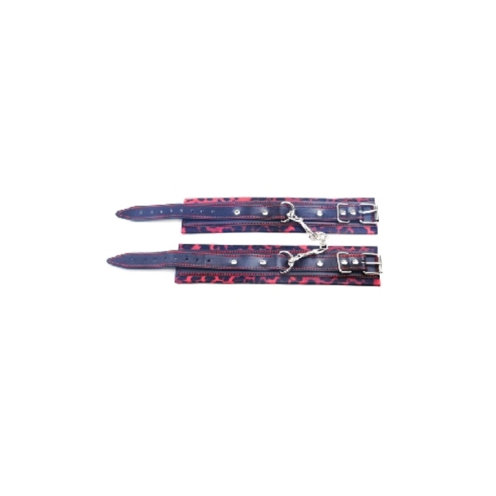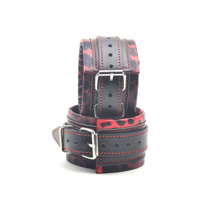 Catuse cu imprimeu tip leopard, din piele ecologica, cu sistem de inchidere pe baza de catarama metalica pentru a ajusta cu usurinta dimensiunea.