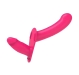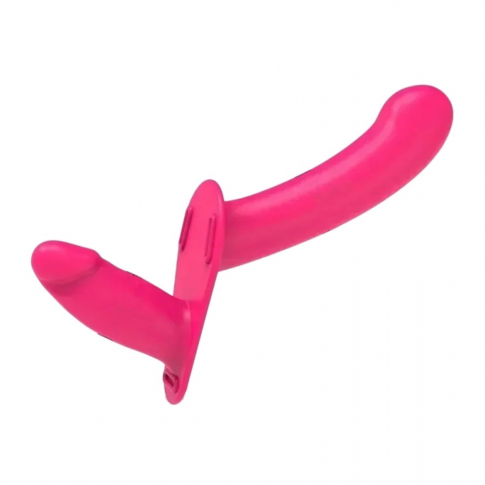 Strap on pentru femei, prevazut cu ambele extremitati cu vibratii. Cureaua de care se prinde este potrivita pentru o circumferinta a taliei de pana la 112cm.