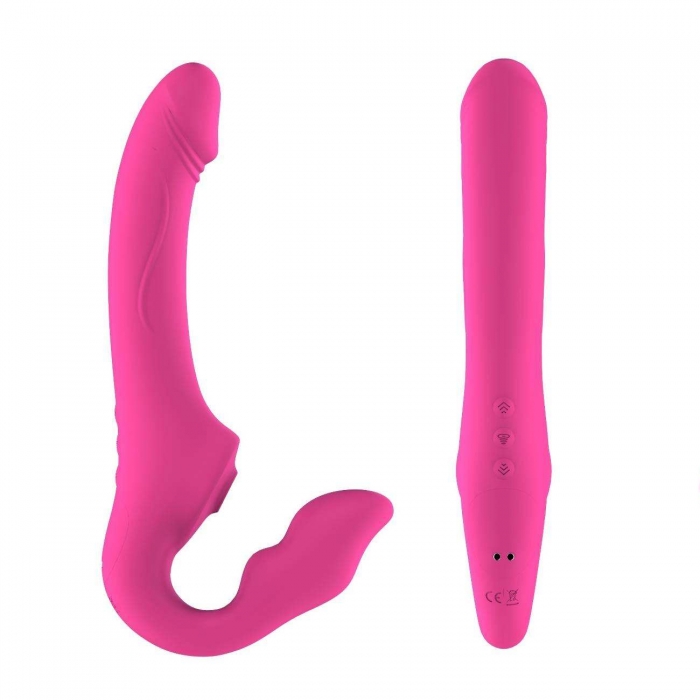 Strap on pentru femei, model fara curele de sustinere. Este dotat cu 10 vibratii. De asemenea, beneficiaza de diferite intensitati de suctiune si miscari care imita sexul oral. Functiile de stimulare se controleaza din telecomanda wireless din dotare. Vine la pachet cu un cablu USB pentru reincarcare.