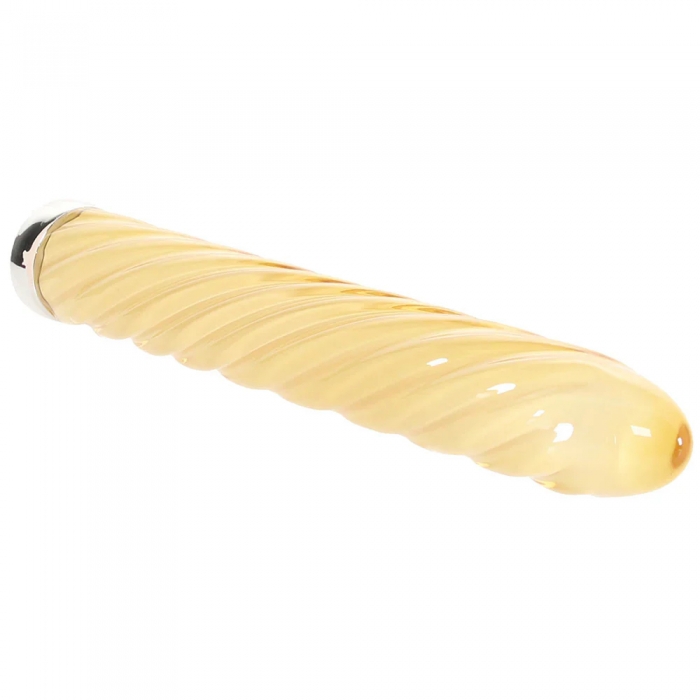 Vibrator din sticla borosilicata, rezistenta, cu striatii spiralate pentru un plus de stimulare. Este dotat cu 10 vibratii. Vine la pachet cu un cablu magnetic USB pentru reincarcare.