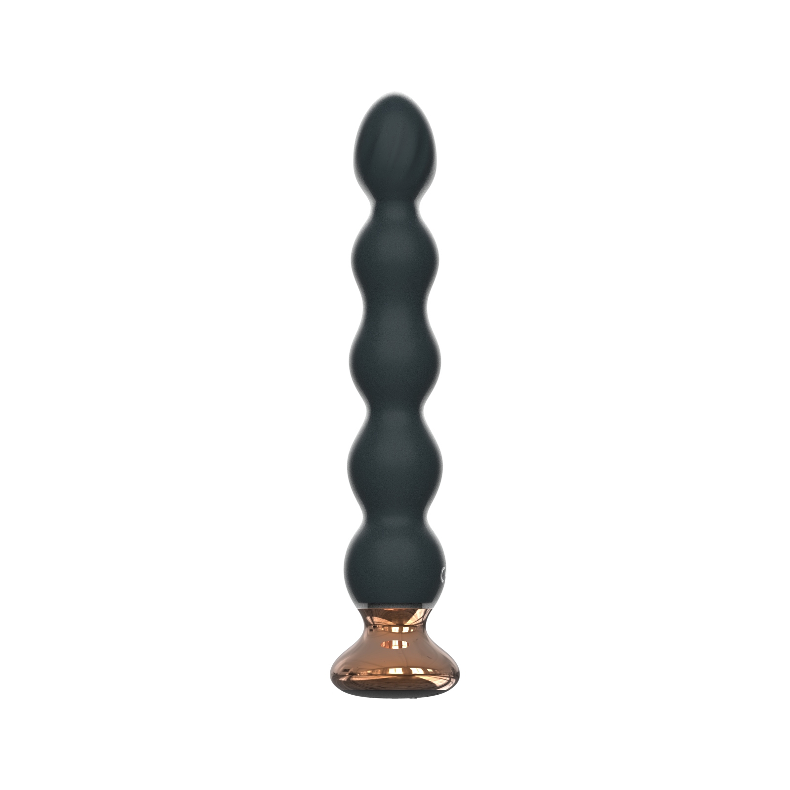 Vibrator anal cu design care imita un sirag de bile suprapuse. Pentru un plus de stimulare bilele au forme diferite. Este realizat din silicon catifelat si ofera 10 functii de vibrare. Functiile se acceseaza si controleaza simplu din telecomanda wireless din dotare.