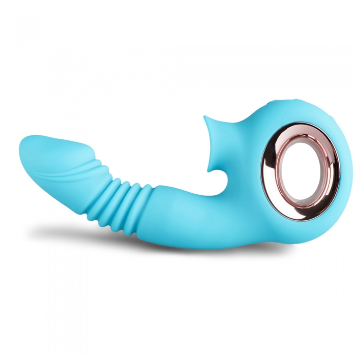 Vibrator care stimuleaza prin miscari de impingere punctul G si prin suctiune clitorisul. Este dotat cu 12 trepte de viteza si vine la pachet cu un cablu USB pentru reincarcare.
