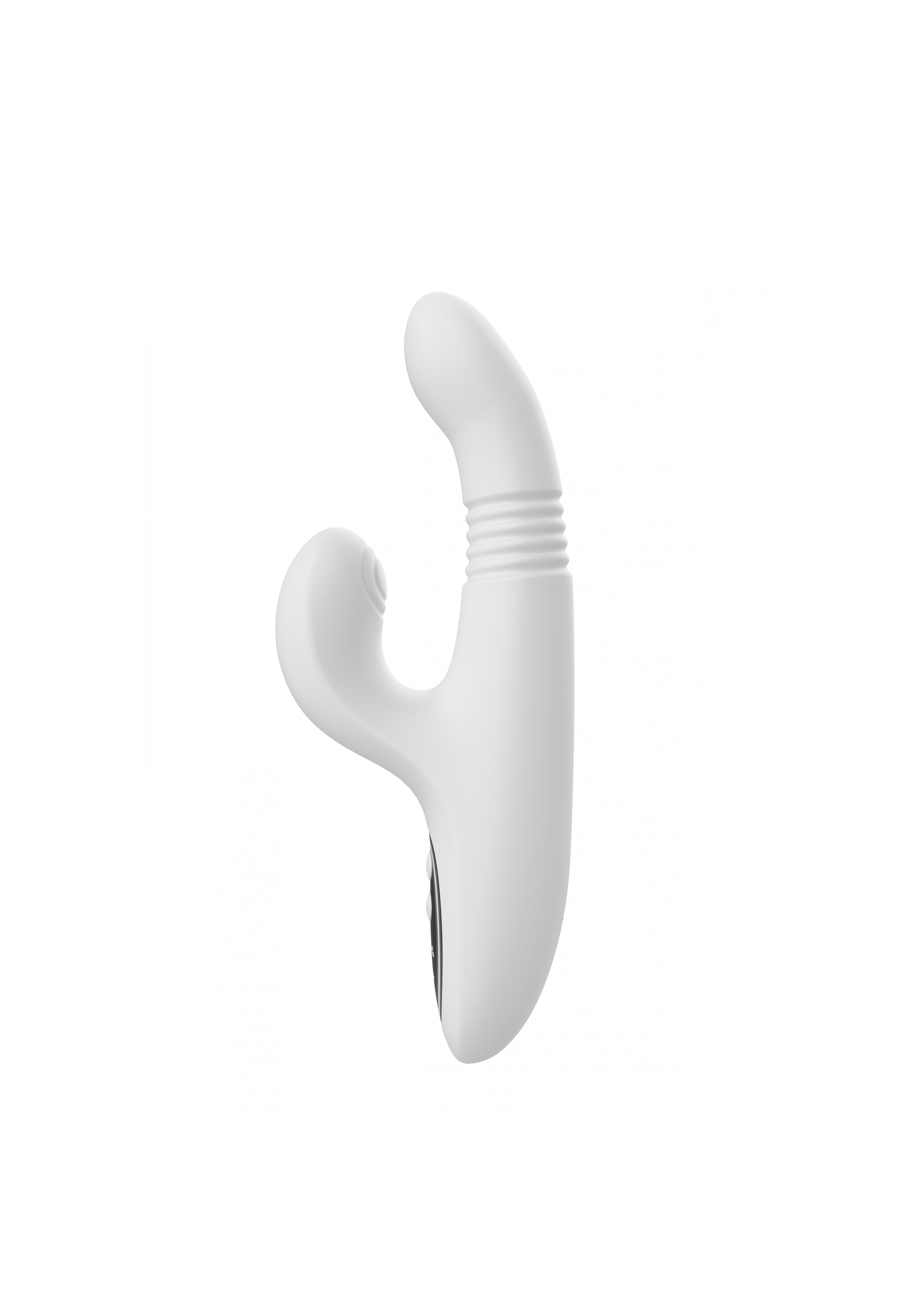 Vibrator pentru stimularea in acelasi timp a punctului G si a clitorisului, prevazut pe maner cu un ecran LCD are indica nivelul bateriei si numarul vibratiei.