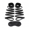Zgara din piele naturala prevazuta cu lesa metalica. Zgarda are sistem de prindere pe baza de catarama metalica, iar lesa este prevazuta cu carabina.